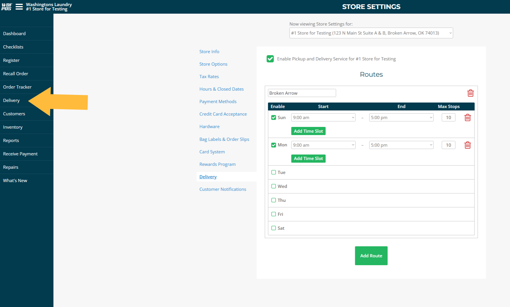 Once enabled, you can create multiple routes and time slots for deliveries.