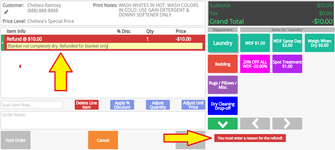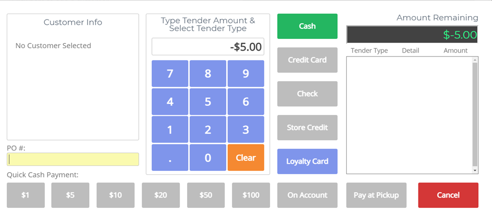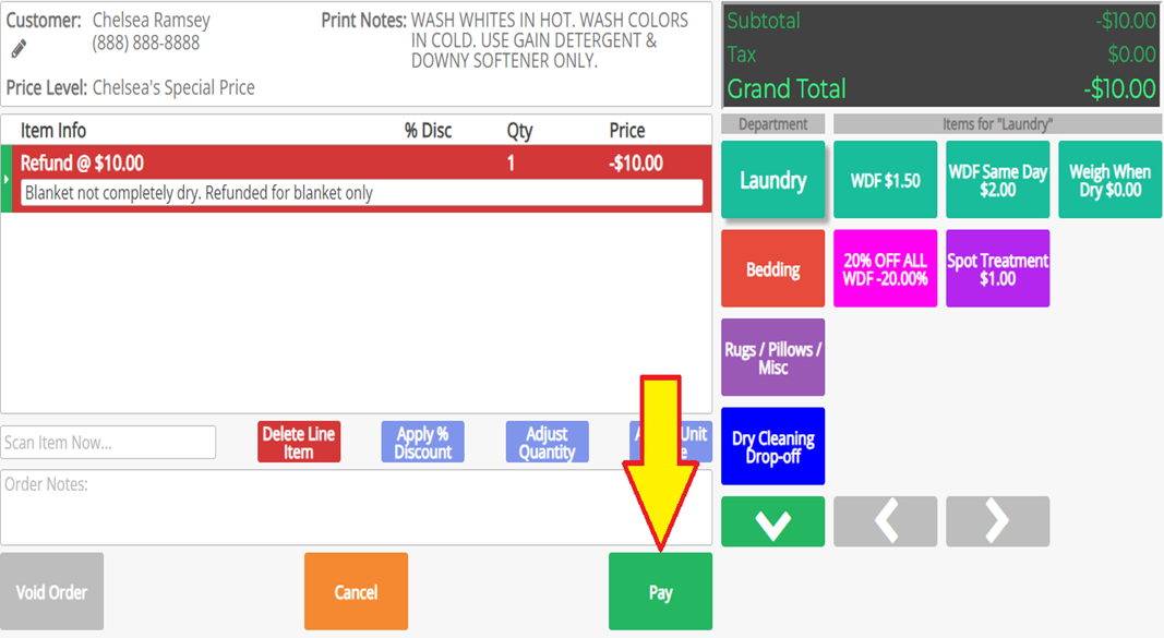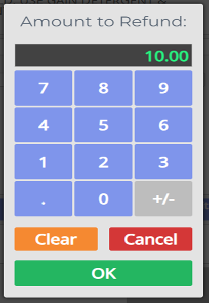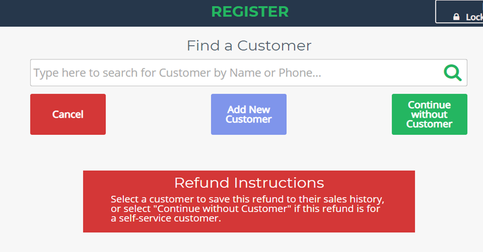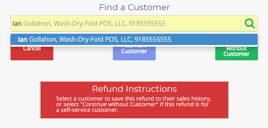 - Continue without a customer (common in laundromats issuing refunds for self-serve machine issues).