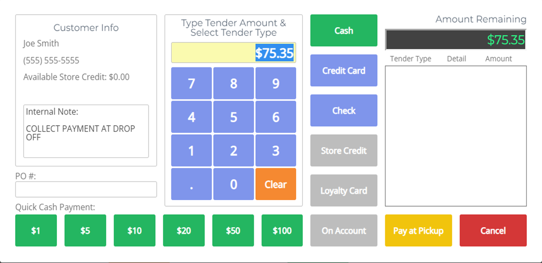 - Example: If the total is $83 and the customer provides $90, the system will indicate that $7 in change should be returned.