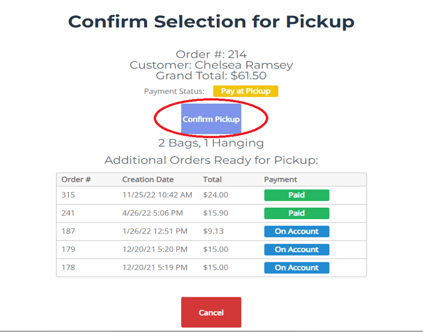 - Click Confirm Pickup.