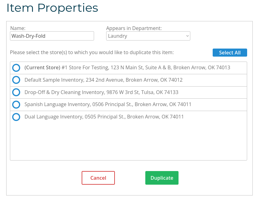 - If managing multiple stores, select where the duplicate should be copied.