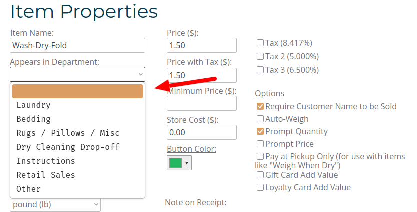 - To re-enable, assign the item back to a department.