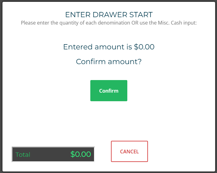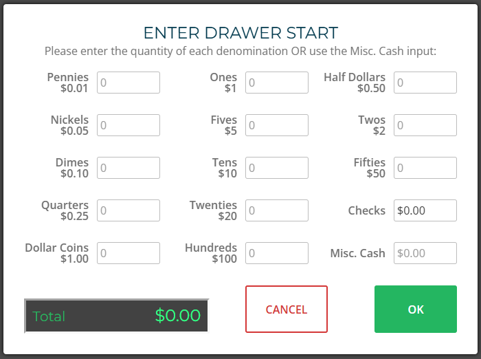 Enter Starting Cash Drawer Amount. Click OK.