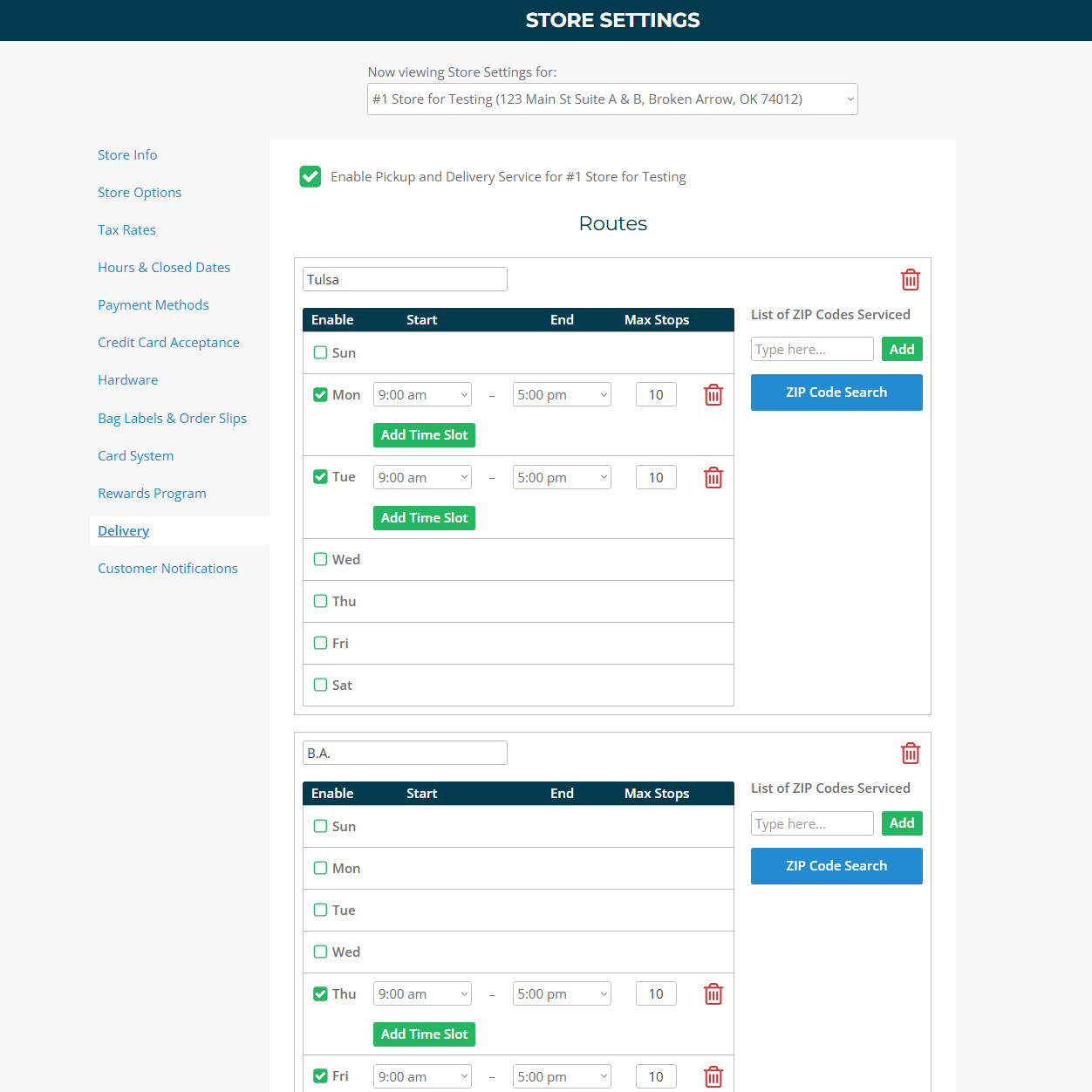 Whether you're using scheduled route-based delivery or on-demand delivery (Uber, DoorDash, etc.), you need to add at least one route with zip codes to filter incoming requests.