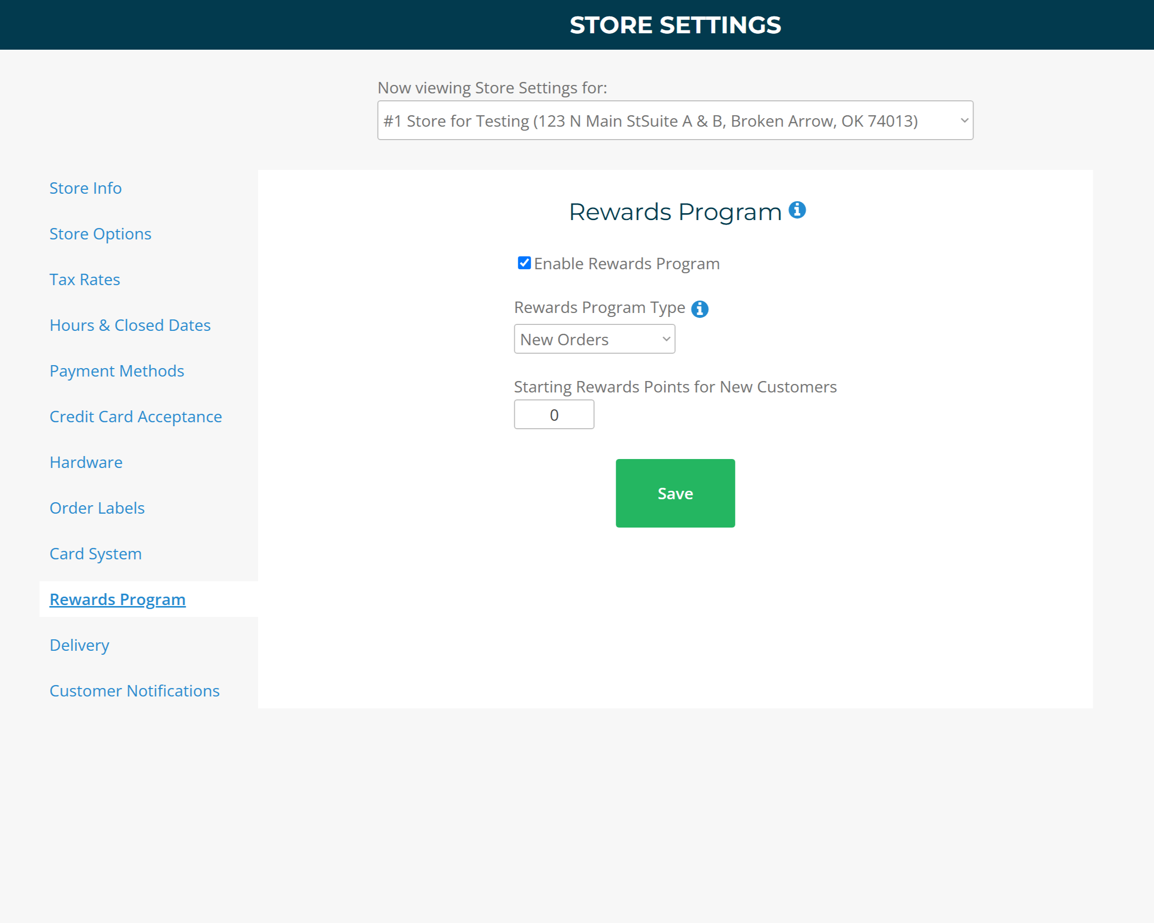 Rewards Program Types (These can be changed by using the dropdown on the Rewards Program page):