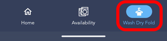 Tap the "Wash Dry Fold" icon in the lower right corner of the WashLynx app.