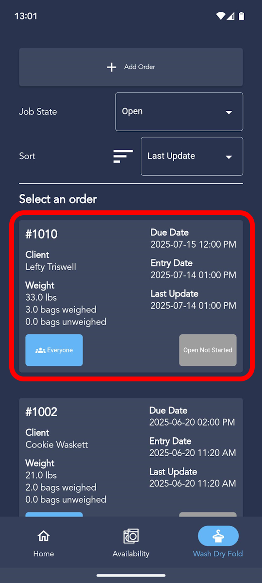 Select the laundry order from the list of open orders synced with Wash-Dry-Fold POS.