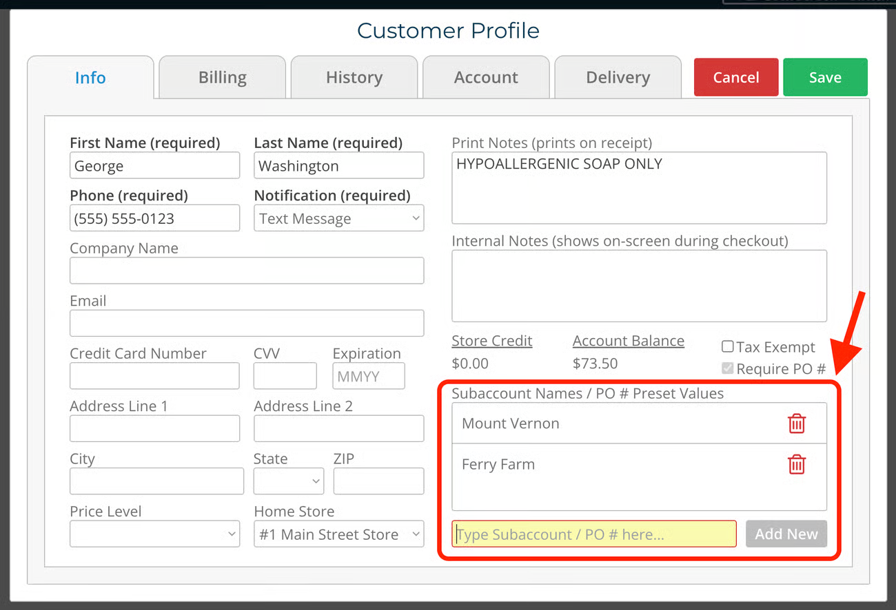 Wash-Dry-Fold POS makes it easy to manage subaccounts and PO numbers for your commercial customers who need to track expenses by location or require specific PO numbers for billing and invoicing.