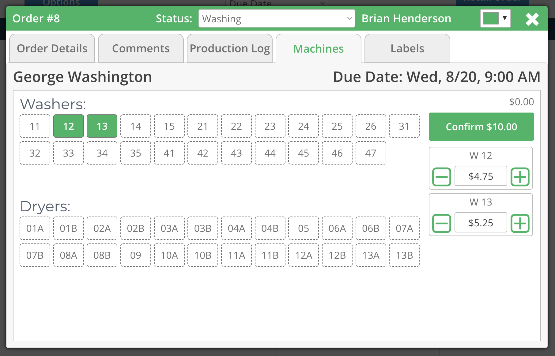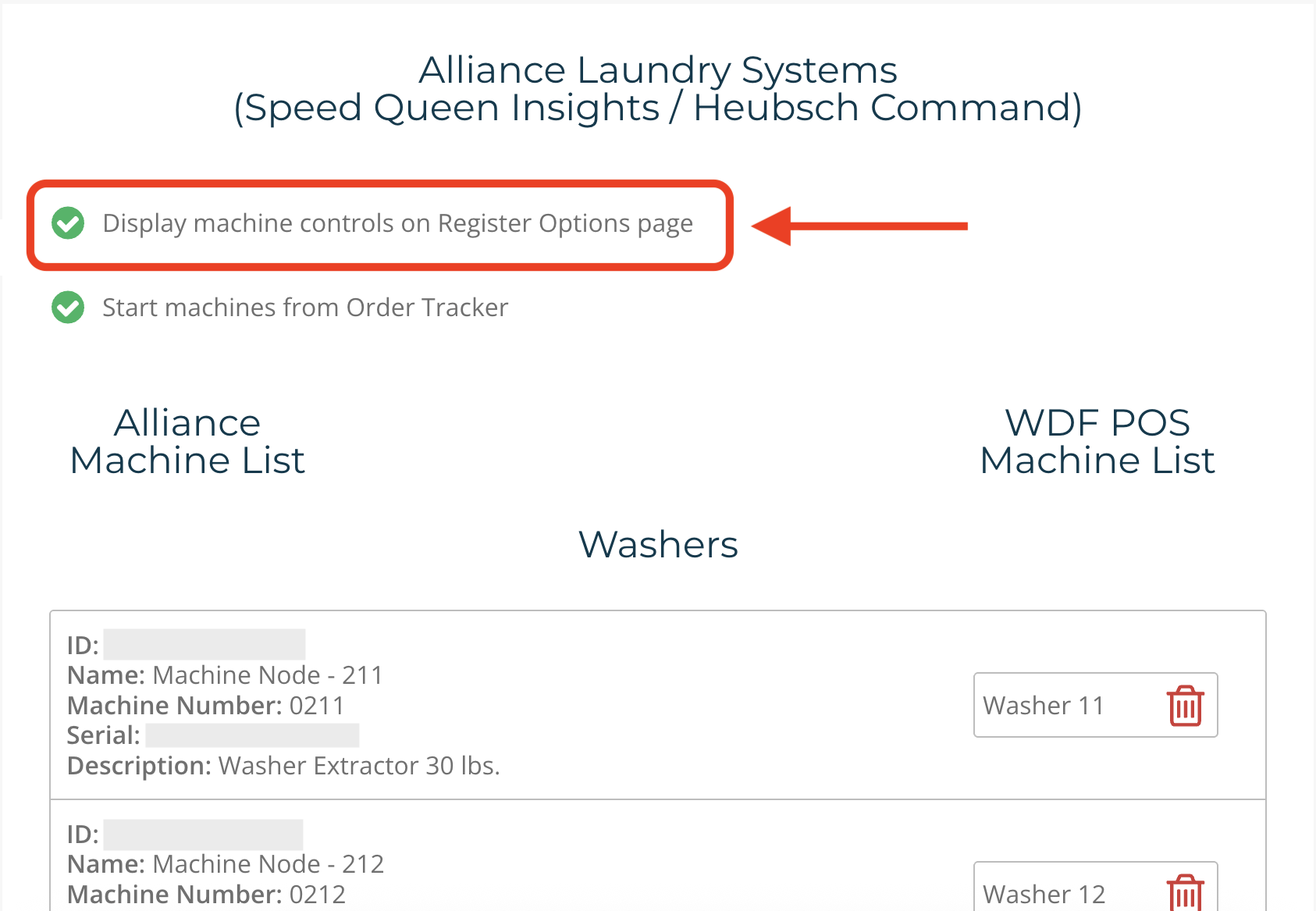 - Match these machines to those in Wash-Dry-Fold POS to ensure machine numbering aligns properly.