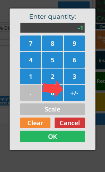 - Change the quantity to -1 (or whatever quantity is being returned)